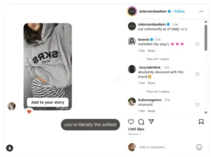 Bir diğer etkileyici özgün içerik pazarlama örneği ise Sisters and Seekers. Görsel hikâye anlatımı, gerçek müşteri etkileşimlerine dayanıyor.