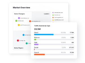 Similarweb, genellikle trafik analizleri için tercih edilir, ancak sosyal medya kabiliyetleri de göz ardı edilmemelidir. Bu araç sayesinde Facebook, Instagram, YouTube gibi platformlarda rakiplerinizin sosyal medya trafik eğilimlerinitakip edebilirsiniz. Rakiplerinizin çevrim içi performansına dair genel bir görünüm sunar: trafik kaynakları, etkileşim oranları ve sosyal medya stratejilerinin müşteri yolculuğuna etkisi gibi birçok veri sağlar.