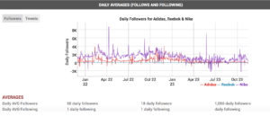 Sonrasında sadece birkaç tıklamayla, her bir rakip için aşağıdaki sosyal medya metriklerini içeren detaylı bir kıyaslama raporu oluşturabilirsiniz:
