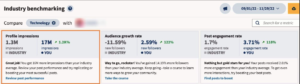 Birden fazla metrik üzerinden kendi sonuçlarınızı sektör ortalamasıyla karşılaştırabilir ve zaman içindeki değişimleri grafiklerle takip edebilirsiniz. Bu kıyaslama aracı aynı zamanda sosyal medya pazarlama stratejinizi geliştirmeniz için öneriler de sunar.