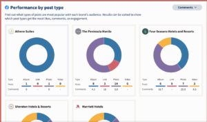 - İçerik türlerine göre performans: Farklı formatlardaki gönderilerin, seçtiğiniz metriğe göre nasıl performans gösterdiğini analiz edin.