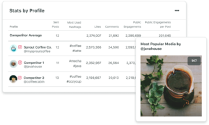 Sprout Social, ana metriklerinizi önde gelen rakiplerle karşılaştırmanıza olanak tanıyan bir sosyal medya rakip analiz aracı sunar. Ayrıca performansınızı sektör ortalamalarıyla kıyaslayabilir ve sosyal dinleme araçları sayesinde anahtar kelime ve hashtag analizleri yapabilirsiniz. Oldukça sağlam analiz özelliklerine sahip olsa da, deneyimli sosyal medya uzmanlarının aradığı bazı özelleştirme seçeneklerinden yoksundur. Ayrıca kullanıcı başına aylık ortalama 332 dolarlık fiyatıyla yüksek bütçeli bir çözüm olarak öne çıkar.