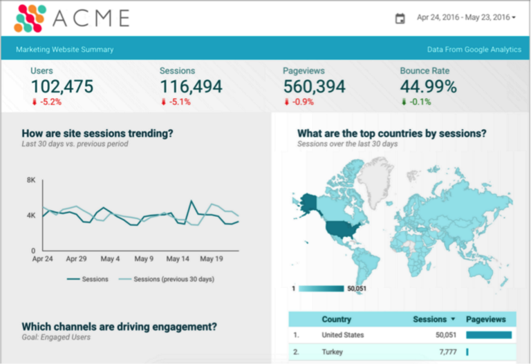 Bonus ipucu: Ücretsiz yönelik tüm veri kaynaklarından güzel panoları yapmak için son zamanlarda başlatılan Google Veri Studio’ya göz atın.