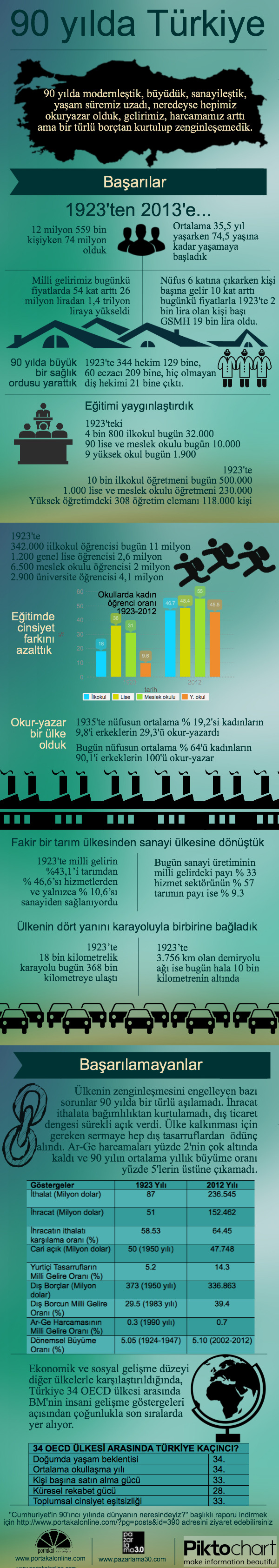 Türkiye cumhuriyetinin kuruluşunun üzerinden tam 90 yıl geçti. Bu 90 yılda yokluk içinden 74 milyonluk sanayileşmiş bir ülke çıktı. Ancak 100 yıla merdiven dayayan bu öykünün içinde hem başarılar hem de başarısızlıklar var.