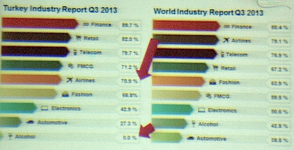 Sorulan sorulara veya bildirilen şikayetlere en geç 24 saat içinde cevap verilmesi gerektiğini anlatan Rezab, günümüzde bu süreyi on dakikaya kadar indiren firmalar olduğunu belirterek bazı sektörlerde bu uygulamaların hala çok zayıf olmasını anlayamadığını ifade ediyor. Rezab’ın paylaştığı verilere göre sosyal müşteri hizmetlerini en iyi kullanan sektörlerin başında finans geliyor, onu havayolları ve telekom takip ediyor. En az kullanan sektörler ise, otomotiv, alkollü içecekler ve elektronik firmaları olarak sıralanıyor. Türkiye’de ise finans sektörü yine başı çekiyor, ancak havayolları yüzde 70’lik ortalamayla beşinci sıraya düşüyor.