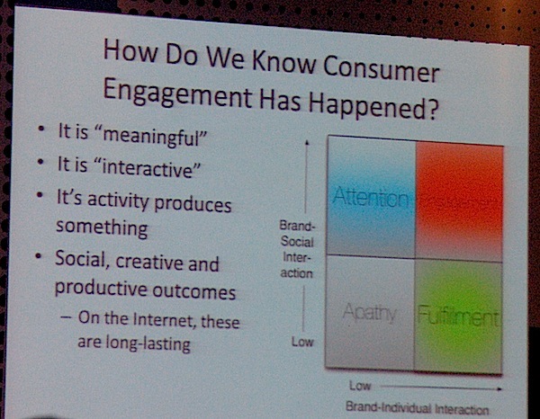 İnternet ortamında ve özellikle de sosyal medyada müşterilerle bağlantı kurmanın yol ve yöntemlerinin tartışıldığı toplantıda, Schulich School’da Pazarlama Profesörü olan ve “Netnografi” kavramını literatüre kazandıran “Dijital antropolog” Robert Kozinets, “Engagement” kavramının “tüketiciler ve markalar arasında anlamlı, interaktif ve bir şeylere yol açan bir aktivite” olarak tanımlanması gerektiğini söyledi. Firmalar açısından müşteriyle “bağlantı” yaratmanın sosyal, yaratıcı ve üretken çıktıları olması gerektiğinin altını çizen Kozinets, tüketiciyle yaratılacak her bağlantının marka lehine olmayabileceğini, markaya büyük zararlar da verileceğini hatırlattı.