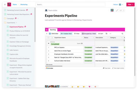 Bu güçlü araçla birlikte yaratıcı içerik üretimi yapmak istediğiniz ekibinizi bir araya toplamanız mümkün. Tettra, ekibinizin ve organizasyonununuzun boyutu önemli olmaksızın başkalarıyla iş birliği yapmanızı sağlar. Wiki formatı, birisinin yanıt vermesini beklemeden en iyi fikirleri daha verimli bir şekilde bulmanıza olanak tanıyor. Makalelerden bilgi toplayabilir, bir sonraki blog gönderiniz için çeşitli konular üzerinde beyin fırtınası yapabilirsiniz.
