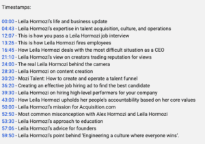 Zaman damgalarına sahip bir açıklama örneğini burada bulabilirsiniz: