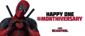 Geçtiğimiz hafta Deadpool’un ilk vizyona giriş tarihinin üzerinden bir ay geçti ve tabii ki bunun için de özel bir gün yarattılar. Adı da Happy One Monthiversary. Twitter’da #Monthiversary hashtaginin altında filmin hayranları Deadpool filmini izlemelerinden önce hayatlarının neye benzediğini, izledikten sonra ise nasıl olduğunu, neler değiştiğini betimleyen oldukça samimi ve tabii ki komik paylaşımlarda bulundu.