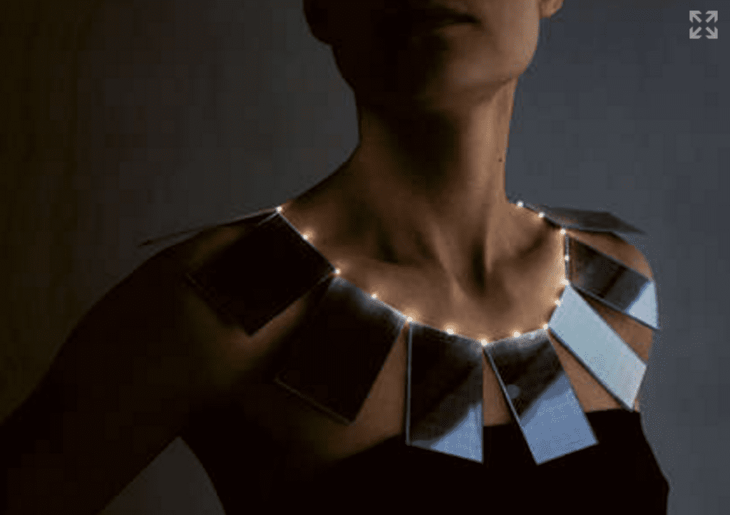 Konstfack Üniversitesi öğrencisi Mae Yokoyama tarafından tasarlanan güneş panelli kolye, gün ışığında topladığı enerjiyi, üstünde bulunan LED sayesinde geceleri loş ışığa dönüştürüyor.
