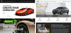 Lamborghini’nin web sitesinde detaylı model özellikleri ve görseller bulunmaktadır. Araçların yanında fiyatlar yoktur. Buna karşılık, Chevrolet’in web sitesini ziyaret edin ve her modelin fiyatı hemen yanında listelenmiştir.