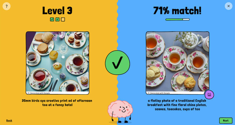 2. Kalite İstemleri – Google Arts & Culture’ın Gördüğünüzü Söyle oyunu, kullanıcıların bir görselle ilgili bilgileri kesin bir dille tanımlamasına olanak tanıyarak yapay zeka motorlarının performansını artırır.