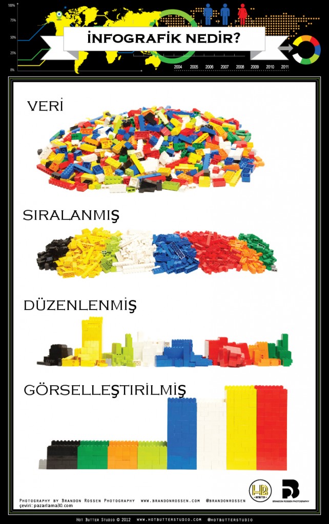 İnfografik nedir? 25/09/2012 by Güventürk Görgülü - A +“İnfografik nedir?” sorusuna lego örneği kullanılarak verilmiş çok zekice bir cevap: “İnfografik, sıralanmış, düzenlenmiş ve görsel bir sunum haline getirilmiş veridir…”Facebook\\\\\\\'ta paylasTweetle