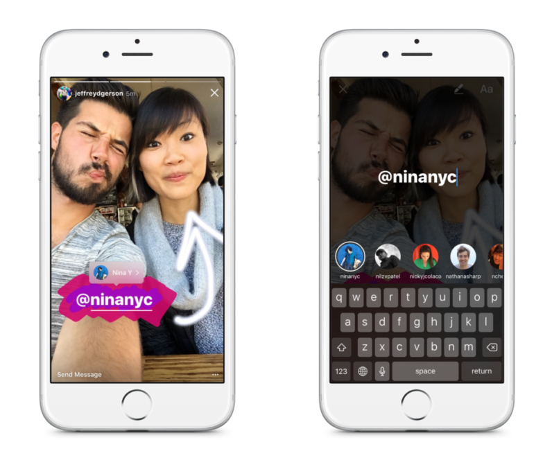 Bir diğer gelişme ise ‘’@’’ işaretini koyarak hikayenizde arkadaşlarınızı etiketleyebilmeniz. Oldukça kolay- hikayenize bir metin yazıyorsunuz ve başında ‘’@’’ işaretini kullanarak istediğiniz kişinin kullanıcı adını giriyorsunuz. Daha sonra attığınız kişinin mesaj kutusuna sizin onu etiketlediğine dair bir bildirim gidiyor.