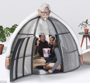Fast food zinciri KFC, alışılmışın dışına çıkarak tasarladığı ‘İnternetten Kaçış Çadırını’ siber pazartesiye özel 10 bin dolara satışa çıkardı. Kamp çadırına benzer bu özel tasarımın önemini arttıran ise sadece bir adet olarak satışa çıkması. KFC’nin kurucusu Albay Sanders’ın koruması altından olan bu çadırı bir koleksiyoncu, bir kampçı veya bu deneyimi yaşamak isteyen bir kişi satın alabilecek.