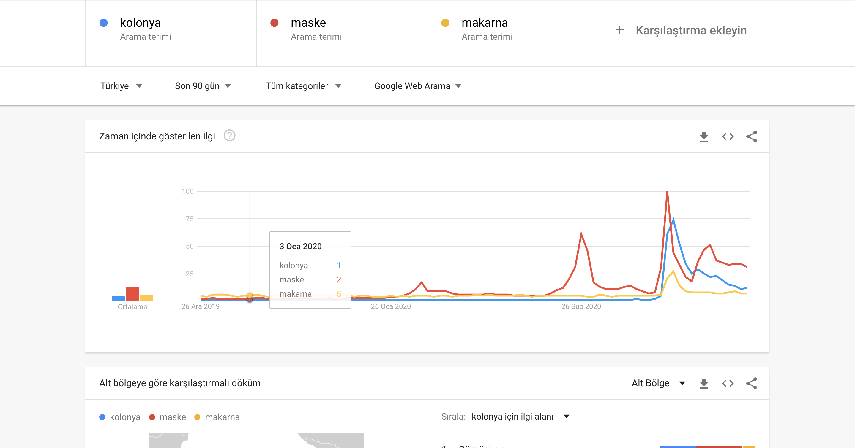 Arama eğilimlerindeki önemli değişiklikler: Çevrim içi satışlar, satın alma eğilimlerinde aşırı bir değişim geçiriyor. Ev eşyaları ve tıbbi malzeme talebi olağanüstü derecede artmakta.