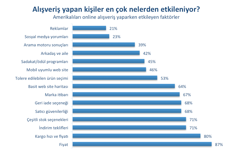 - Aşağıdaki faktörler Amerikliların çevrimiçi alışveriş yaparken en çok etkilendiği şeyleri göstermektedir.