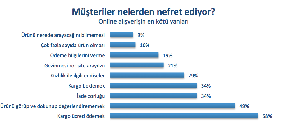 - Tüketicilerin yüzde 55’i alışverişten geri aide olmaması, stok sıkıntısı ve nakliye ücretlerinden dolayı vazgeçmekte.