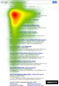 Kullanıcılar arama motoru sonuç sayfasında (SERP) Google’ın arama sonuçlarını nasıl görür ve tıklar ? İlginç bir şekilde, bu durum yıllardır pek bir değişikliğe uğramadı – tabii sadece organik sonuçlar olduğunu varsayarsak. Yalnız, farklı SERP düzenlerinin ve sonuçlarının karşılaştırıldığı Mediative White Paper’ı okuduğunuzdan emin olun. Google, SERP içerisinde yer alan farklı özelliklere -mesela karusellere, haritalara ve özet bilgi grafiklerine sahip olduğunda, belirgin bir fark oluşur.