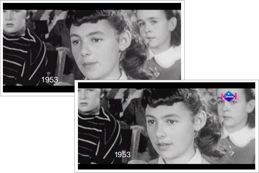 Kontrollü bir testte, izleyicilere Libresse reklamının iki sürümünden biri izletildi. Sürümlerden birinde marka yalnızca sonlara doğru görünüyordu (solda). Diğer sürüm, Libresse logosuna videonun başından itibaren (sağda) yer verilerek benzersiz YouTube ortamına uyarlandı.