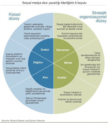 Pek çok şirkette sosyal medya okuryazarlığı emekleme döneminde. Bu konudaki heyecan ve potansiyel, rehberlik ve koordinasyon olmadan geri tepebilir ve şirkete ciddi zararlar da verebilir. Bu alanda verimli ve doğru şekilde ürün alabilmek, liderlerin çevrelerindeki paydaşların sosyal medya okuryazarlığını artırmak için aktif rol oynamaları gerekiyor. Akıllı liderler, bunu gerçekleştirebilmek için organizasyonlarında dijital yerlilerden yararlanacakları “tersine mentorlük” (gençlerin yaşlılara mentorlük yapması) programları uygulayabilirler. Müşterilerin ihtiyaçlarının çözümü ve hizmet kalitesini yükselme amacına yönelik sosyal medya kullanımını geliştirmek için liderler artık sosyal medya alanında stratejik bir organizatör olarak çalışmak durumunda. Bu çalışma, sosyal iletişimin gerektirdiği topluluk mentorleri, sosyal girişimciler, içerik küratörleri gibi bir dizi yeni rolün de tanımlanmasını gerektiriyor.