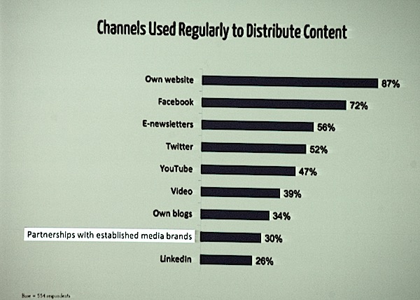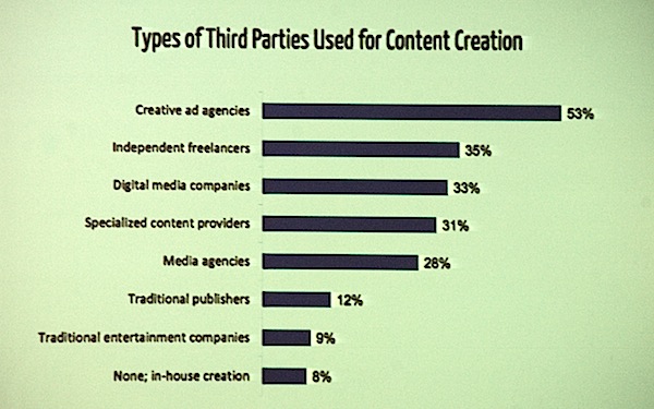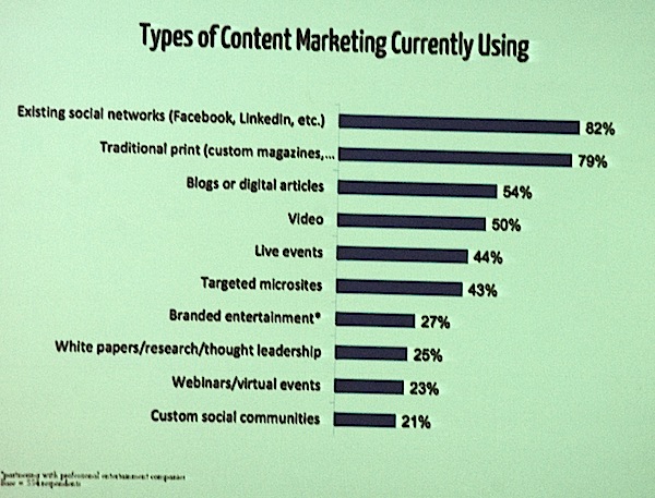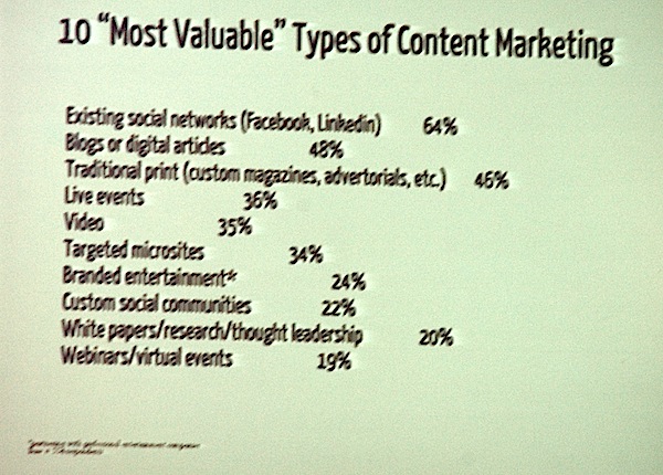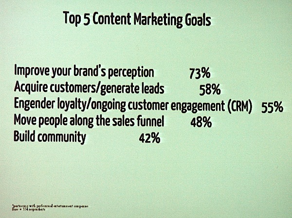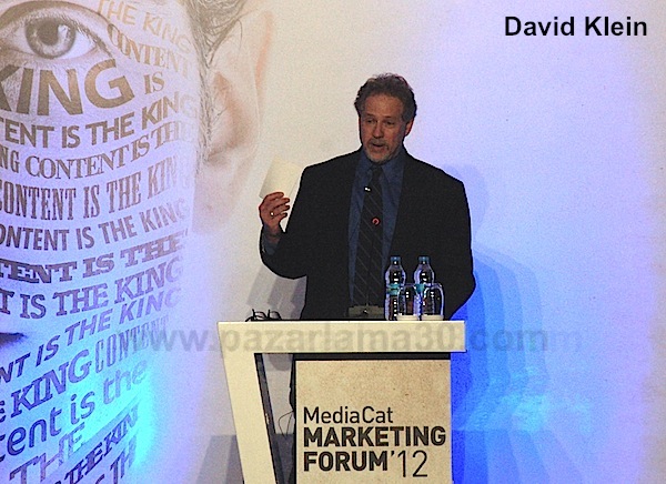 Bugün yapılan “Power of Content Marketing” başlıklı Marketing Forum 2012’nın son oturumunda konuşan Ad Age Grubu’nun Başkan Yardımcısı David Klein, markaların içerikle pazarlamaya nasıl baktığını anlattı. Geçtiğimiz ekim ayında Advertising Age Dergisi’nin veritabanındaki profesyonel pazarlama yöneticileriyle gerçekleştirdikleri araştırmanın sonuçları, büyük şirketlerin “Content Marketing” veya “İçerikle Pazarlama” konusuna ne denli önem verdiklerini gösteriyor. Konuyu daha sonra ayrıntılarıyla ele alacağız ama daha önce Klein’in sunumunda aktardığı en çarpıcı sonuçları içeren beş grafiği burada paylaşıyoruz. İlk slaytta ise içerikle pazarlamanın ne anlama geldiğini özet olarak görüyoruz…