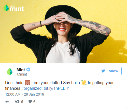 Yukarıdaki örnekte para yönetimi yapan bir uygulama olan Mint, tweetinde geçen “sakla” ve “merhaba” kelimelerini emojilerle vurguluyor. Marka bu mesajı emojiler kullanmadan da iletebilirdi. Fakat tweetinizde küçük simgeler kullanmak mesajınızı iletirken daha eğlenceli ve dikkat çekici olmanızı sağlayabilir.