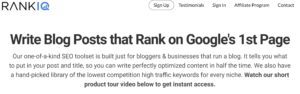 Blog yazarları ve blog sahibi işletmeler için özel olarak oluşturulan RankIQ, kullanıcıların SEO için optimize edilmiş blog gönderileri oluşturmasına yardımcı olan bir SEO araç setidir.
