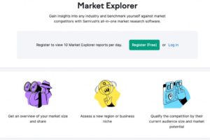 Semrush, pazar araştırma araçlarını içeren ücretsiz bir deneme sunar. Burada sektörünüzün büyüklüğünü, işletmenizin doldurabileceği mevcut nişleri ve rakiplerinizin pazar potansiyelini görebilirsiniz.