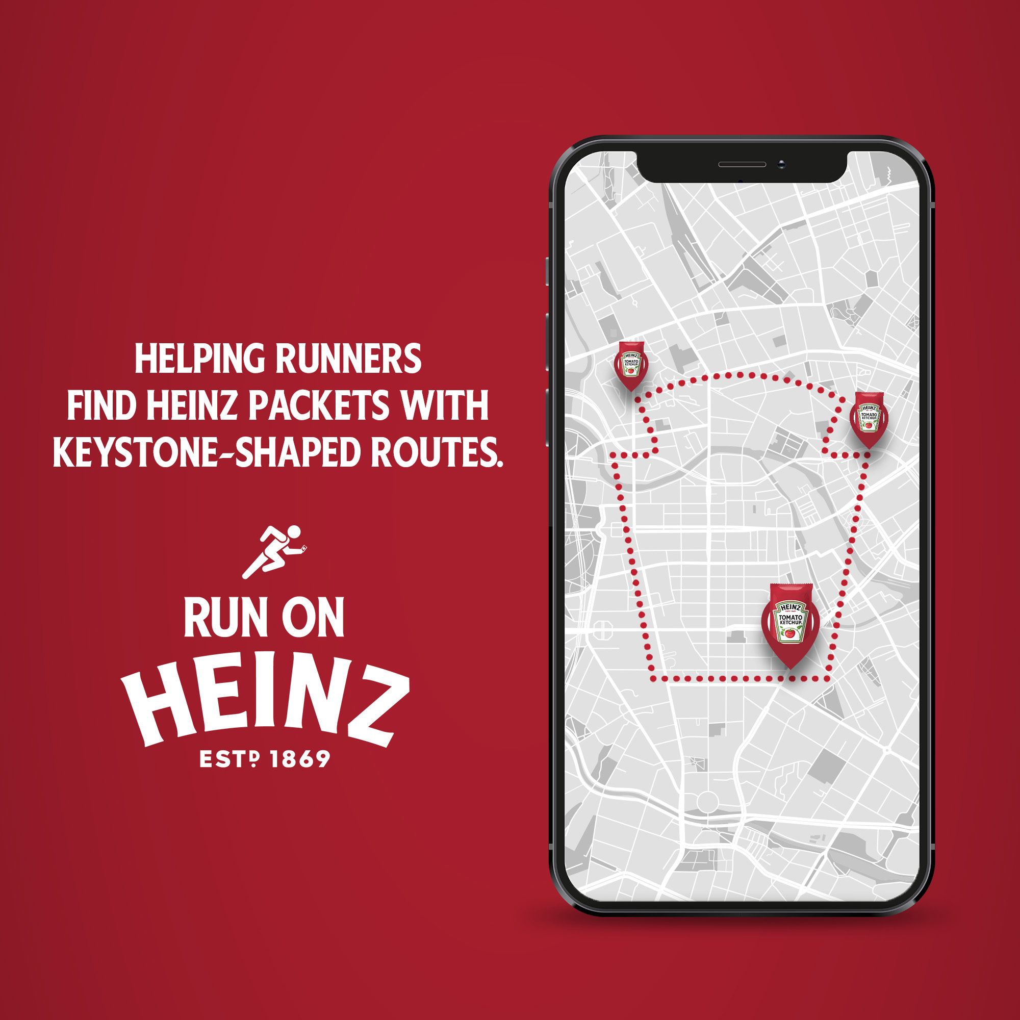 1. Özelleştirilmiş Rota Koşusu – ‘Heinz’de Koş’ kampanyası, koşucuların ücretsiz ketçap paketleri alabilmeleri için özel olarak tasarlanmış Strava ve MapMyRun’a kilit taşı şeklindeki koşu rotalarını tanıtıyor.