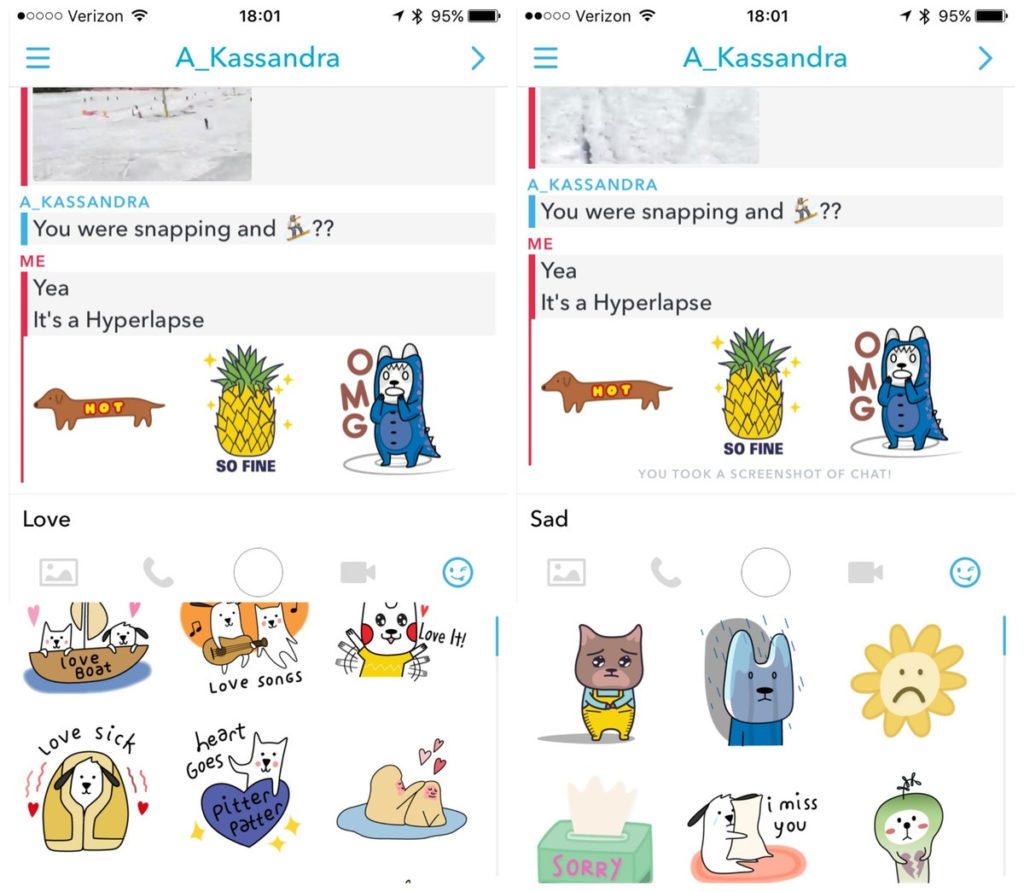 Snapchat son güncellemesinde sohbetinize uygun stickerları kullanmanız için bir özelliği kendi içinde sakladı. (Bu özellik sohbet sırasında binlerce kez parmak yormanız yerine çok kullanışlı oluyor). Bir stickerı aramak için sohbet kısmına eklemek istediğiniz stickerın ismini yazdığınızda ve sticker butonuna tıkladığınızda yazdığınız kelimeye yakın olan stickerlar ön planda çıkıyor.