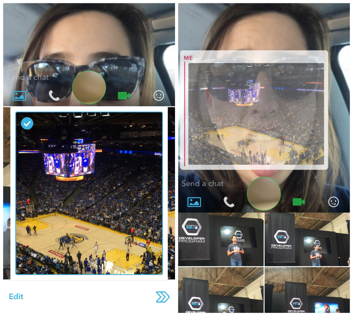 Görüntülü konuşma esnasında sticker gönderebilir hatta fotoğraflarınızı paylaşabilirsiniz. Videolu görüşme esnasında resim gönderdiğinizde gönderdiğiniz görüntü videonun üstünde çıkıyor ve daha sonrasında yavaşça kayboluyor. Görüntülü konuşma sonunda yine de sohbeti açtığınızda karşı tarafın gönderdiği fotoğrafı sohbette görebiliyorsunuz.
