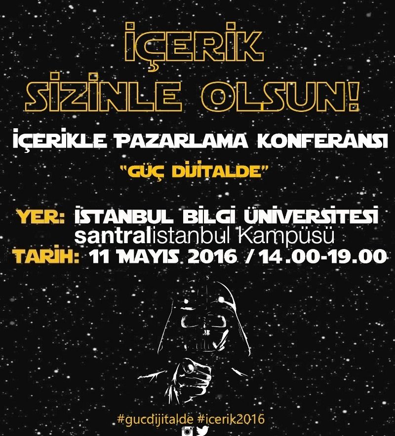 İçerikle Pazarlama Konferansı’16 İçerik Sizinle Olsun Güç uyanalı çok oldu! Ve bu güce ayak uydurmaktan başka bir şansımız yok. Çünkü Güç Dijitalde artık. Bu yüzden de dijital çağın öncü isimlerini bir araya getiriyoruz… Yeni nesil pazarlama trendleri, dijital dünyada ayakta kalabilmenin sırları, içerik üretmenin püf noktaları, pazarlama alanında sosyal medya kullanımı gibi konuların tartışılacağı “İçerik … Read more
