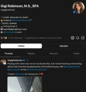 “Bir sürü takipçi direkt Instagram’dan ya da Facebook’tan Threads’e geçti, bence bu harikaydı.” Şu ana kadar Threads’te 10 binin üzerinde takipçi kazandığını belirtiyor.