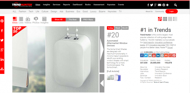 Trend Hunter, pop kültürü, yenilikçi fikirleri ve viral haberleri içeren çevrimiçi bir site. En trend konseptleri Trend Hunder TV’de yer alıyor . Teknolojiden modaya, reklamlar, tasarım, kültür ve değişen tüm trendleri bulabilirisiniz.