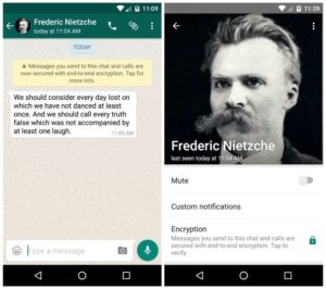 Uygulamayı kullananların fotoğrafları, mesajları ve aramaları son güncellemeyi yükledikten sonra şifreleniyor. Yeni güncellemede mesajların gönderildiği sayfada bütün konuşmaların şifrelendiğini söyleyen bir mesaj da yayınlanıyor.Whatsapp