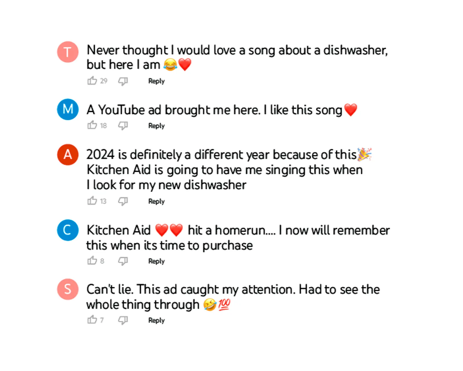 Bazı markalar hayran etkileşimini yepyeni bir düzeye taşıdı. KitchenAid, reklamları için unutulmaz bir şarkı oluşturmak üzere bir müşterinin yorumunu kullandı ve YouTube’un müzik topluluğundan büyük ilgi topladı.