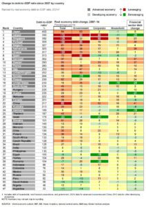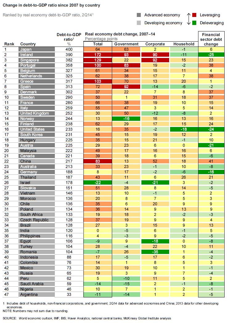 Uluslararası Danışmanlık şirketi McKinsey‘in Şubat 2015’te yayınladığı dünya borç raporuna göre, 2007-2008 resesyonundan bu yana dünyadaki toplam borç miktarı azalacağına artıyor. Rapora göre dünya ülkelerinin toplamında, hane halklarının yani bireylerin, şirketlerin, devletlerin ve finansal kuruluşların 2007‘nin son çeyreğinde 142 trilyon dolar olan toplam borç miktarı, kriz süresince 57 trilyon dolar daha artarak 2014‘ün son çeyreğinde 199 trilyon dolara dayandı. Oysa 2000 yılının başında küresel borç miktarı 87 trilyon dolardı.